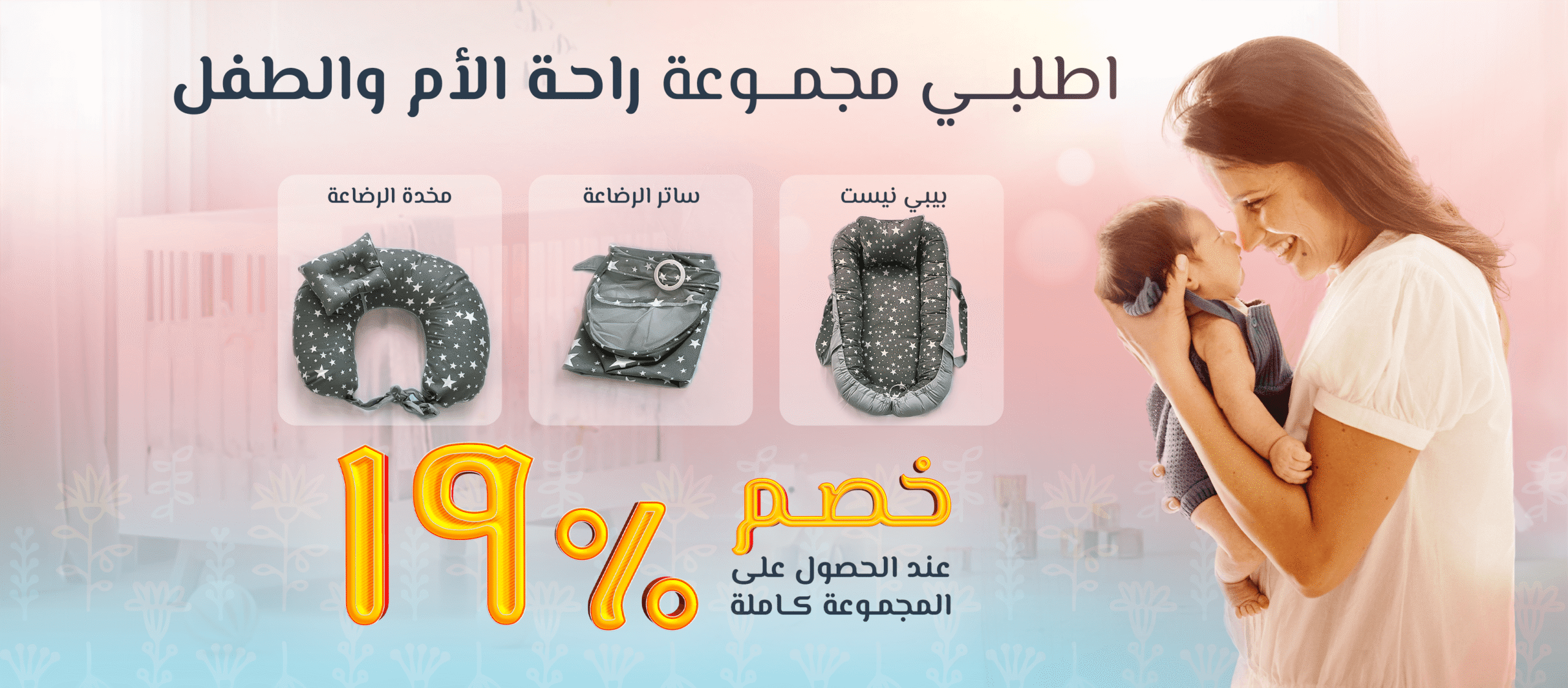 مجموعة الرضاعة برسمة الهلال – بيبي نيست + ساتر + مخدة رضاعة